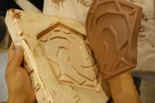 In 2007, Swoon and a group of friends were invited to purchase and restore an abandoned church in Braddock, Pennsylvania. Over the next 10 years, Swoon participated in a number of projects that focused on rehabilitating the structure in a way that would also engage and benefit the immediate surrounding community. These efforts included collaborating with local artist collective Transformazium on a deconstruction (as an alternative to demolition) initiative for fire-damaged sections of the building, creating a Super Adobe dome in the building’s disused parking lot, and, finally, the creation of Braddock Tiles.