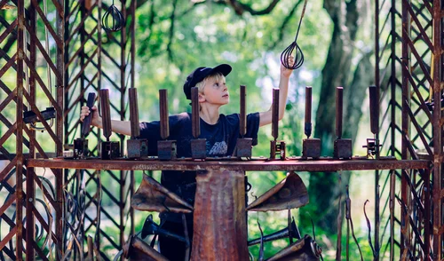 The Music Box was the first iteration of Music Box Village, an immersive, experimental, fully playable musical environment originally built on the site of a collapsed shotgun house on Piety Street in New Orleans. In 2011, Swoon, with co-founding members Jay Pennington, Taylor Shepard and Delaney Martin, developed the concept of musical architecture and invited 25 artists to create site-specific installations that would become the initial prototype and sound laboratory. The project began five years after Hurricane Katrina, in response to the long-term struggle towards recovery that continued to impact the livelihood of residents and the distinct musical culture of the city. Curry’s intention was to cultivate a space for collective play to support the process of healing from disaster. She says "I hope it represents this very basic need in people to rebuild joyfully and with imagination."