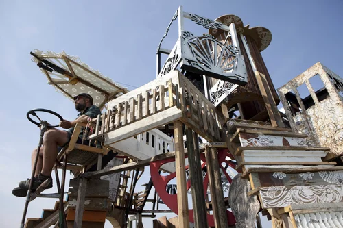 The rafts pushed off at White Sands in 2006, and performed musical variety shows and arts workshops in the towns along the river. The project dry-docked at a restaurant and biker-bar called Ducky’s Lagoon in the Quad Cities when the weather became too cold to continue. In 2007, the rafts were reconfigured into smaller vessels, and included new members who joined and built new rafts. The flotilla travelled south to St. Louis, where they made an emergency landing and were hosted on Bob Cassilly’s “Cement Land”, the founder of the City Museum of St. Louis, after river conditions became too dangerous to navigate.