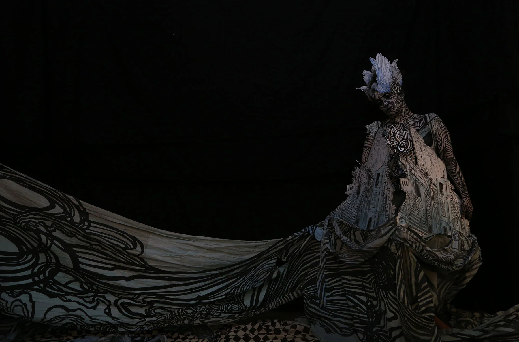 Swoon’s collaborators on Swimming Cities of Switchback Sea included playwright Lisa D’Amour, circus composer Sxip Shirey, Kinetic Steam Works from San Francisco, and the band Dark Dark Dark. Performances took place as the boats docked during their journey down the Hudson River in August and in front of Deitch Studios during the second week of September.